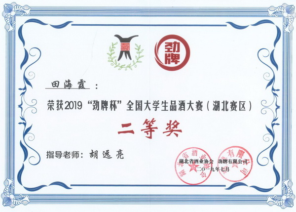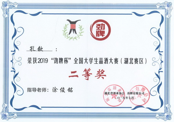 “劲牌杯”全国大学生品酒大赛(湖北赛区)获奖证书