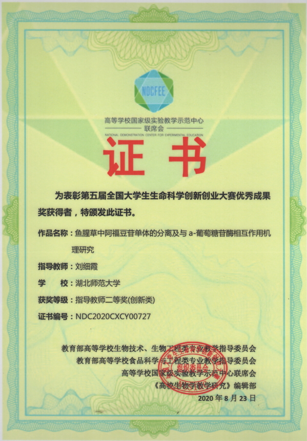 第五届全国大学生生命科学创新创业大赛获奖证书(教师)