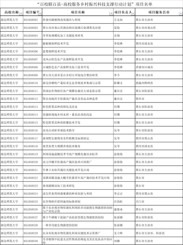 经高校推荐、湖北省教育厅评审,共确定了1502个高校科技支撑服务乡村振兴项目,涉及高校101所,覆盖县市104个,实现了全战线参与,全县域覆盖。其中我校共有52个获批立项,立项数排名第五。yl23455永利官网获批立项29项,名列全校榜首。