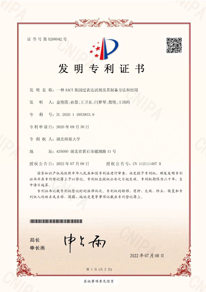 金艳霞博士团队一项成果获国家发明专利授权