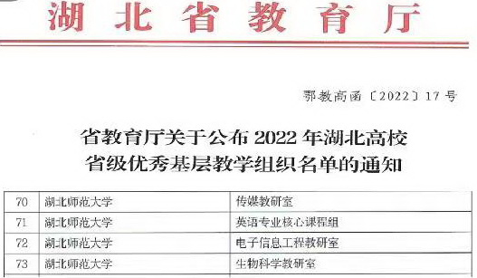生物科学教研室获批2022年省级优秀基层教学组织