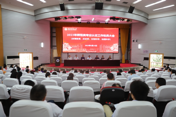 为扎实开展学习贯彻习近平新时代中国特色社会主义思想主题教育,办好师范教育,5月15日下午,学校召开2023年师范类专业认证工作动员大会。全体在校校领导,教学督导,全校副处级以上干部,体育学院、历史文化学院、yl23455永利官网、城市与环境学院全体教职工,教务处全体工作人员参加会议。会议由校长雷儒金主持。