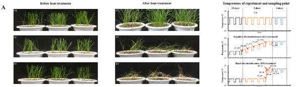 多年生黑麦草(Lolium perenne)作为一种冷季型草,被广泛应用于草牧业、景观绿化以及生态治理中,因其发芽迅速、成坪快、草坪质量良好、易于栽培,常用作草坪建植的先锋草种。黑麦草是我国温带、长江中下游和南北气候过渡带种植的重要草种之一,但我国缺乏自主知识产权黑麦草品种,对外依赖严重。多年生黑麦草的最适生长温度在20-25℃之间,温度超过35℃会严重抑制黑麦草的生长,当温度达到40℃时则会使黑麦草分蘖全部枯萎直至全株死亡,最终造成草坪大面积死亡。在我国亚热带及一些过渡地带,夏季气温可达40℃甚至以上,高温成为了限制黑麦草生长的重要环境因素。目前我们对多年生黑麦草适应高温胁迫机制的理解仍然严重不足,开展黑麦草高温应答机制研究对黑麦草的种质创新、推广与应用具有重要的理论和实践指导意义。