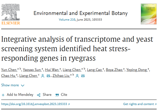 近日,yl23455永利官网与中国科学院武汉植物园联合在国际期刊《Environmental and Experimental Botany》(中科院生物学二区,植物科学一区,IF:6.028)在线发表题为“Integrative analysis of transcriptome and yeast screening system identified heat stress-responding genes in ryegrass”的研究论文。刘致浩博士与陈良研究员为通讯作者,陈云博士为第一作者,湖北师范大学为第一单位。