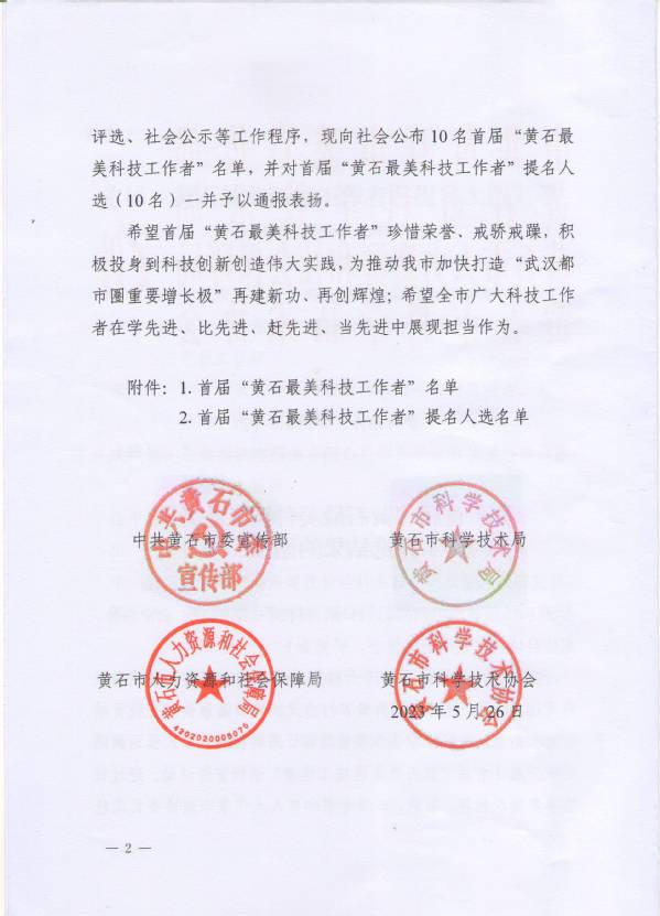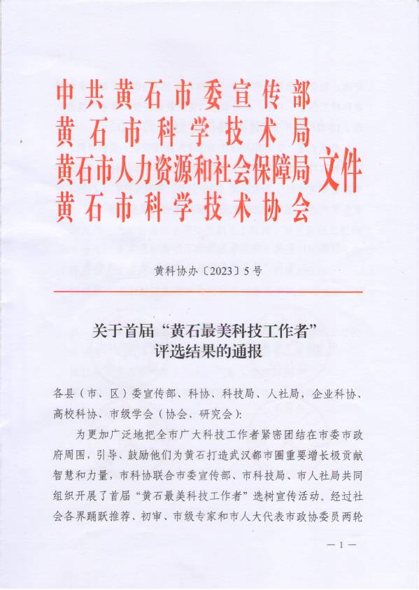 据悉,今年市科协联合市委宣传部、市科技局、市人社局组织开展“黄石最美科技工作者”评选活动,这也是黄石市首次开展“最美”系列科技工作者评选活动。经社会各界踊跃推荐,43名来自全市重点产业链头部企业、医疗卫生领域、科技领域、教育领域、农业农村领域的优秀科技工作者积极报名,经过两轮评审、面向社会公示等环节,最终评选出10名“黄石最美科技工作者”。