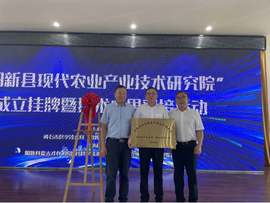 8月17日上午,阳新县现代农业产业技术研究院成立挂牌仪式在阳新县率洲管理区举行。湖北师范大学校长雷儒金、黄石市科技局局长刘红霞、阳新县县长杨波和副县长余正江等参加活动。