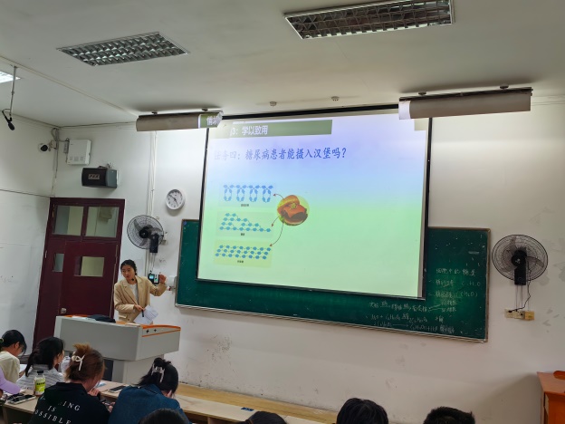 活动伊始,赵琪老师以糖类代谢异常的疾病—糖尿病为情境,介绍糖尿病病因并给出常见食物及食品配方表,引导学生主动分析常见糖类的种类和分布,并给糖尿病患者提出有价值的饮食建议,对无糖食品作出科学的评价。在此基础上进行深度拓展,设计实验对常见的糖类进行鉴别,对糖尿病进行检测。在环环相扣的情境触发下完成了《细胞中的糖类》这节知识的建构。