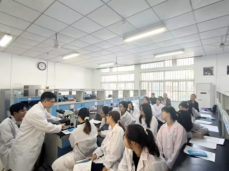 2023年10月24日下午,植物学教研室在8103实验室组织开展了听课评课活动。本次课程由郭平安博士主讲,教学内容为《植物学实验》的实验一—显微镜的使用及植物细胞基本结构。生科院教学督导和植物学教研室全体教师参加活动。