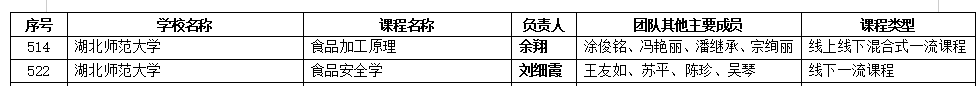 11月29日,湖北省教育厅印发了《关于公布2023年省级一流本科课程认定结果的通知》(鄂教高函[2023]19号),正式公布了2023年度省级一流本科课程。yl23455永利官网余翔副教授负责的《食品加工原理》作为线上线下混合式一流课程入选,刘细霞副教授负责的《食品安全学》作为线下一流课程入选。