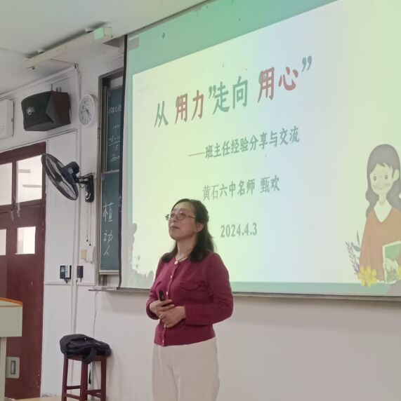 本网讯(通讯员 席德强)携一缕春芽萌动,聚一份教育力量。为进一步加深师范生对班主任工作的认识,提升师范生的班主任工作管理能力,2024年4月3日下午,黄石六中名师工作室主持人甄欢老师受邀来到湖北师范大学生命科学学院,为2021级167名师范生作了题为《从“用力”到“用心”——做一个“四心”同在的班主任》的专题报告,和一群朝气蓬勃的大学生们就班主任的话题展开交流。
