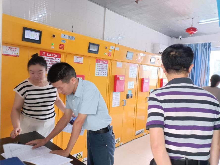 安全检查工作小组对危化品仓库、仪器共享公共平台、科研实验室、教学实验室管理情况逐一进行了全面系统的检查,对发现的安全隐患、仪器设备等问题进行了记录,现场提出整改意见,明确整改期限,要求及时消除各类安全隐患。检查小组对照实验室检查评分标准,分别对实验室的卫生、药品管理、仪器管理、安全管理及整体状况进行打分。