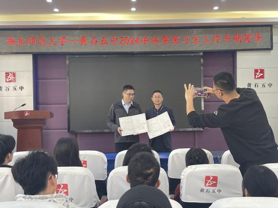 本网讯(通讯员 吴琴)2024年10月29日,由我校yl23455永利官网教学副院长陈亮、生物科学系副主任郭平安、专任教师吴琴,以及文学院专任教师杨森旺一行四人带队,对铁山第一中学、黄石五中、磁湖中学三所实习基地进行了深入的考察与交流。此次检查活动旨在全面了解我校实习生在实习基地的学习、工作和生活情况,以及实习基地对我校实习工作的反馈与建议。检查组一行四人,凭借丰富的教育经验和专业知识,为本次检查活动注入了强大的动力。铁山第一中学、黄石五中、磁湖中学作为我校长期合作的实习基地,一直以来都为我校实习生提供了宝贵的实践机会。其中,铁山第一中学和磁湖中学为初中,黄石五中为高中。我校在这三所实习基地共派遣了84名实习生,他们分别来自汉语言文学、教育学、化学、地理科学、音乐学、美术学、英语、物理学、生物科学、历史学、体育教育等多个专业,为实习基地注入了新鲜的血液和活力。