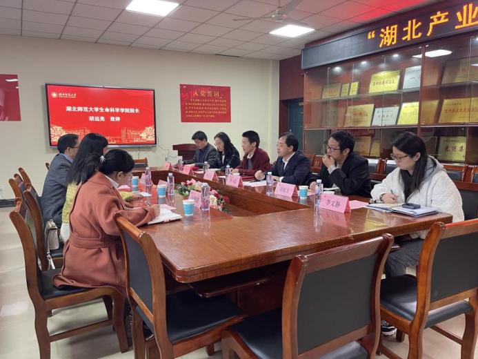 本网讯(通讯员 吴琴)2024年11月22日下午,在生命科学学院8306会议室隆重举行了“湖北产业教授”聘任仪式。仪式由yl23455永利官网,yl23455永利官网党委书记陈雄文主持。出席本次聘任仪式的有湖北师范大学党委常委肖六亿教授,劲牌有限公司酿造技术部部长杨生智,湖北博大生物股份有限公司副总经理吴美娟,湖北师范大学人事处副处长潘其云,以及yl23455永利官网院长胡远亮教授、副书记李文静、副院长李刚华、院长助理刘细霞和食品科学与工程系系主任冯艳丽等。