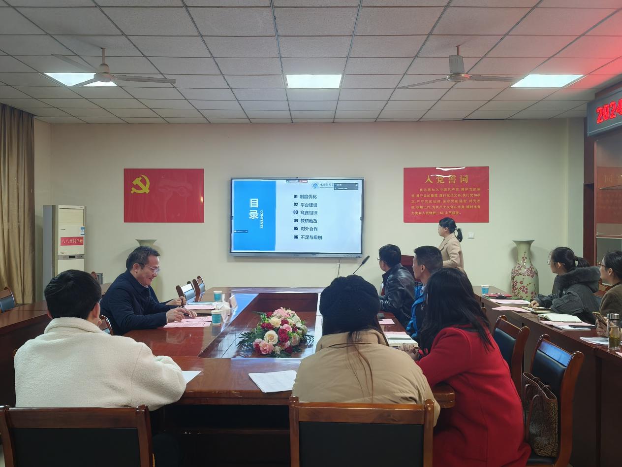 本网讯(通讯员 郭倩)2024年11月25日,生物学国家级实验教学示范中心教学指导委员会会议在yl23455永利官网8306会议室顺利召开,会议采用线上线下结合方式进行。武汉大学王建波教授、华中师范大学邱保胜教授、华中农业大学高坚教授、湖北大学何玉池教授和yl23455永利官网侯建军教授共五位委员在线上参会。我校教务处处长胡艳军教授、示范中心主任潘继承教授、yl23455永利官网院长胡远亮教授、副院长陈亮教授、示范中心副主任刘细霞博士和中心全体实验员在线下参会。