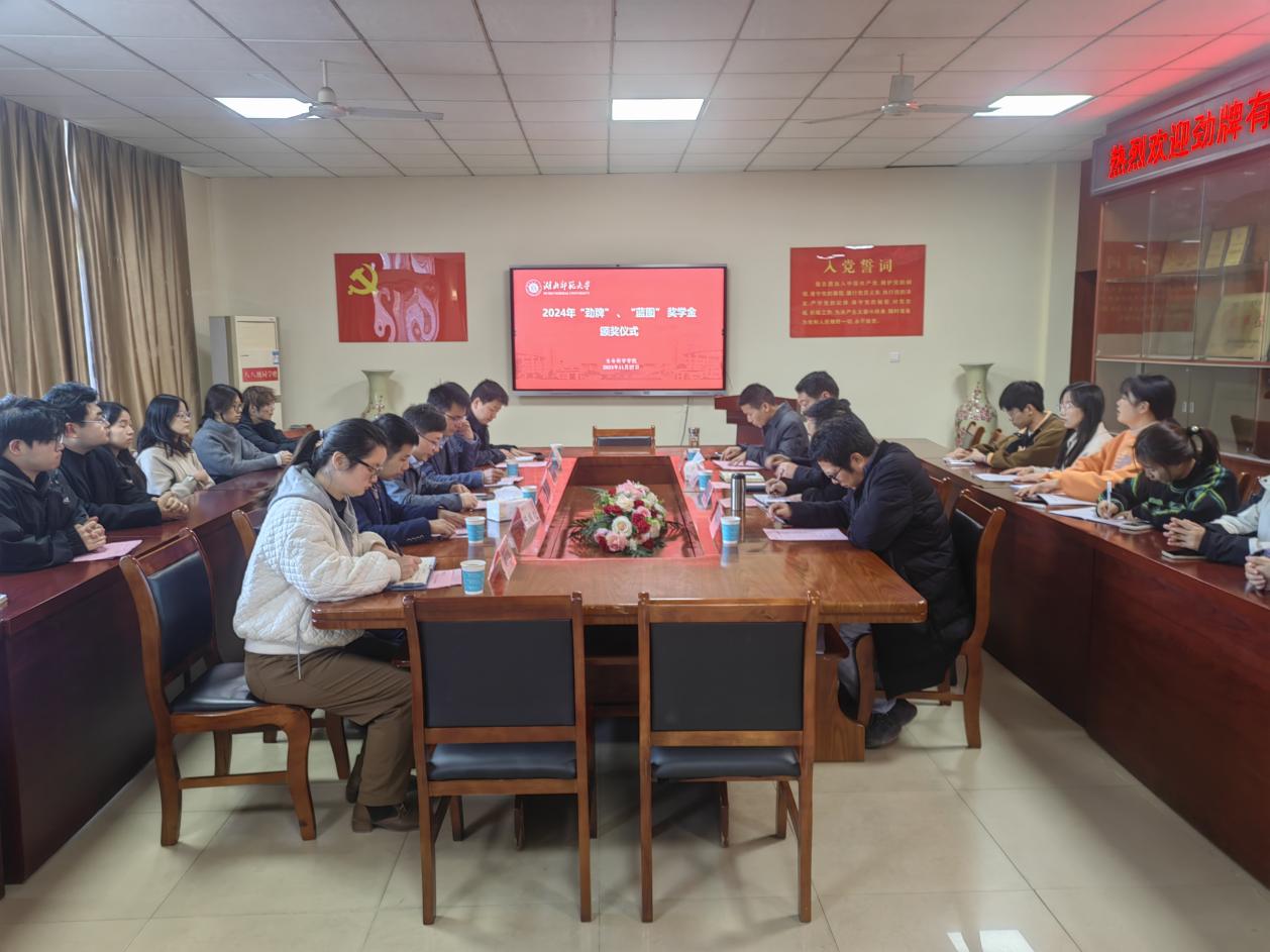本网讯(通讯员 张良)11月27日下午,2024年度“劲牌”、“蓝图”奖学金发放仪式在yl23455永利官网8306会议室隆重举行。副校长余涛、劲牌研究院技术管理部部长许银、劲牌研究院微生物研究室主任陈申习、黄石市蓝图生物科技有限公司副总经理陈国财,以及相关职能部门和学院的负责人、获奖学生共同参加了本次仪式。仪式由yl23455永利官网院长胡远亮主持。