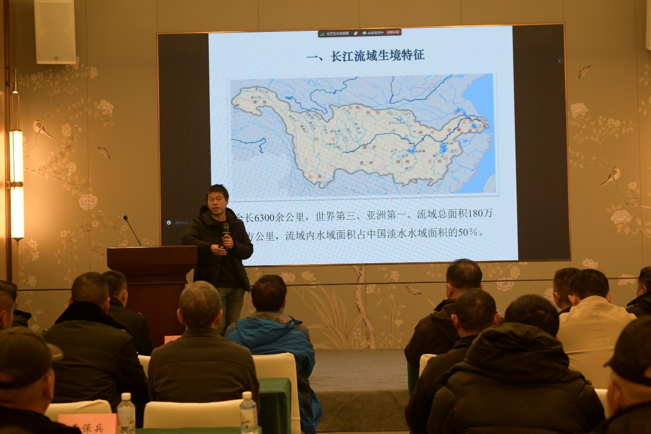 在本次培训班中,来自yl23455永利官网的熊文博士为100名湖北省长江流域渔政协助巡护骨干开展了“长江鱼类保护和外来物种防治”讲座。从长江流域生境特征、长江流域鱼类生态习性、长江鱼类危机、长江鱼类保护和中华鲟救护技术、湖北省外来水生生物防治等几个方面进行了介绍。