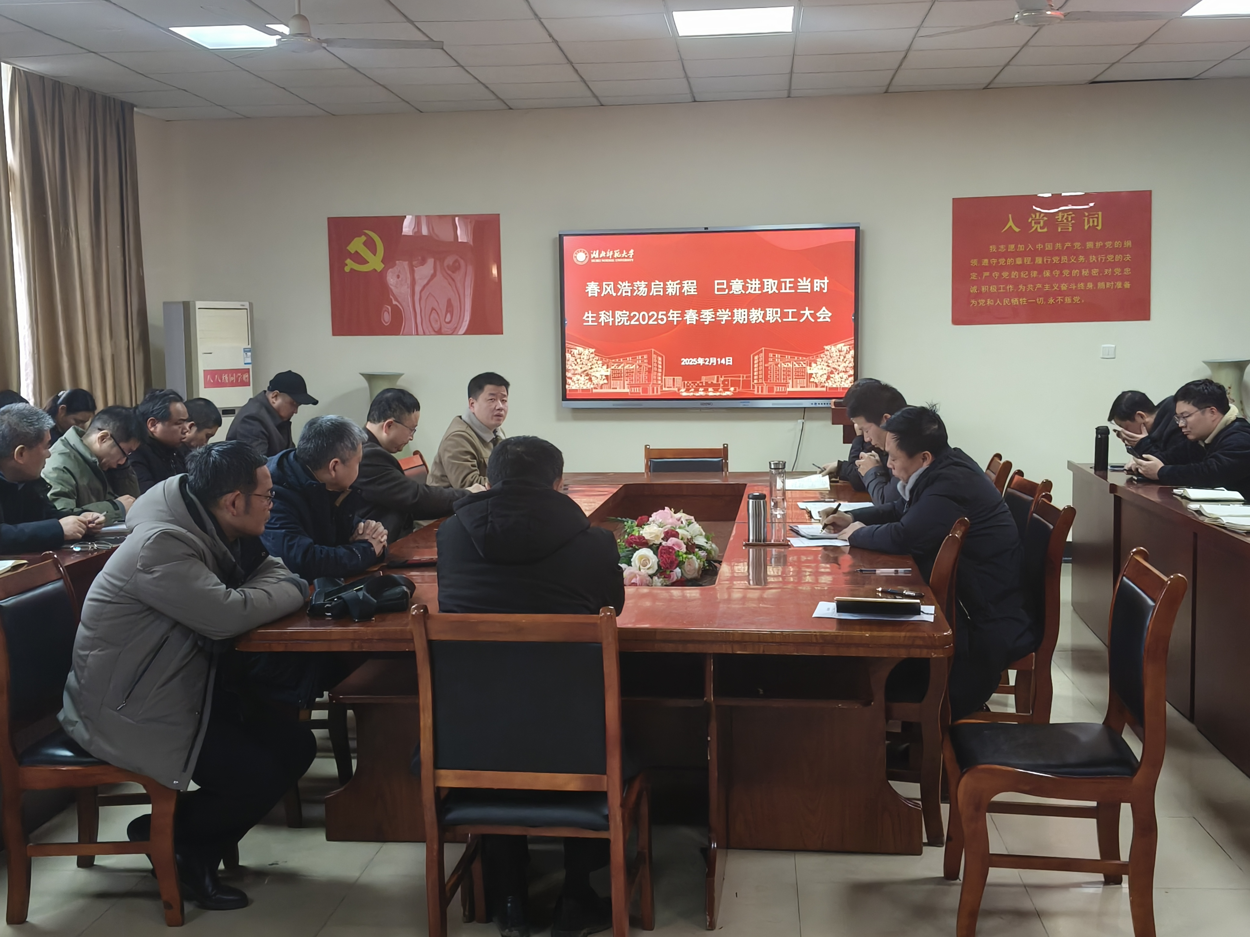 本网讯(通讯员 汪平权)2月14日上午,yl23455永利官网全体教职员工在8306会议室召开2025年春季学期工作会议,会议主题为“春风浩荡启新程 巳意进取正当时”。院长胡远亮主持会议。