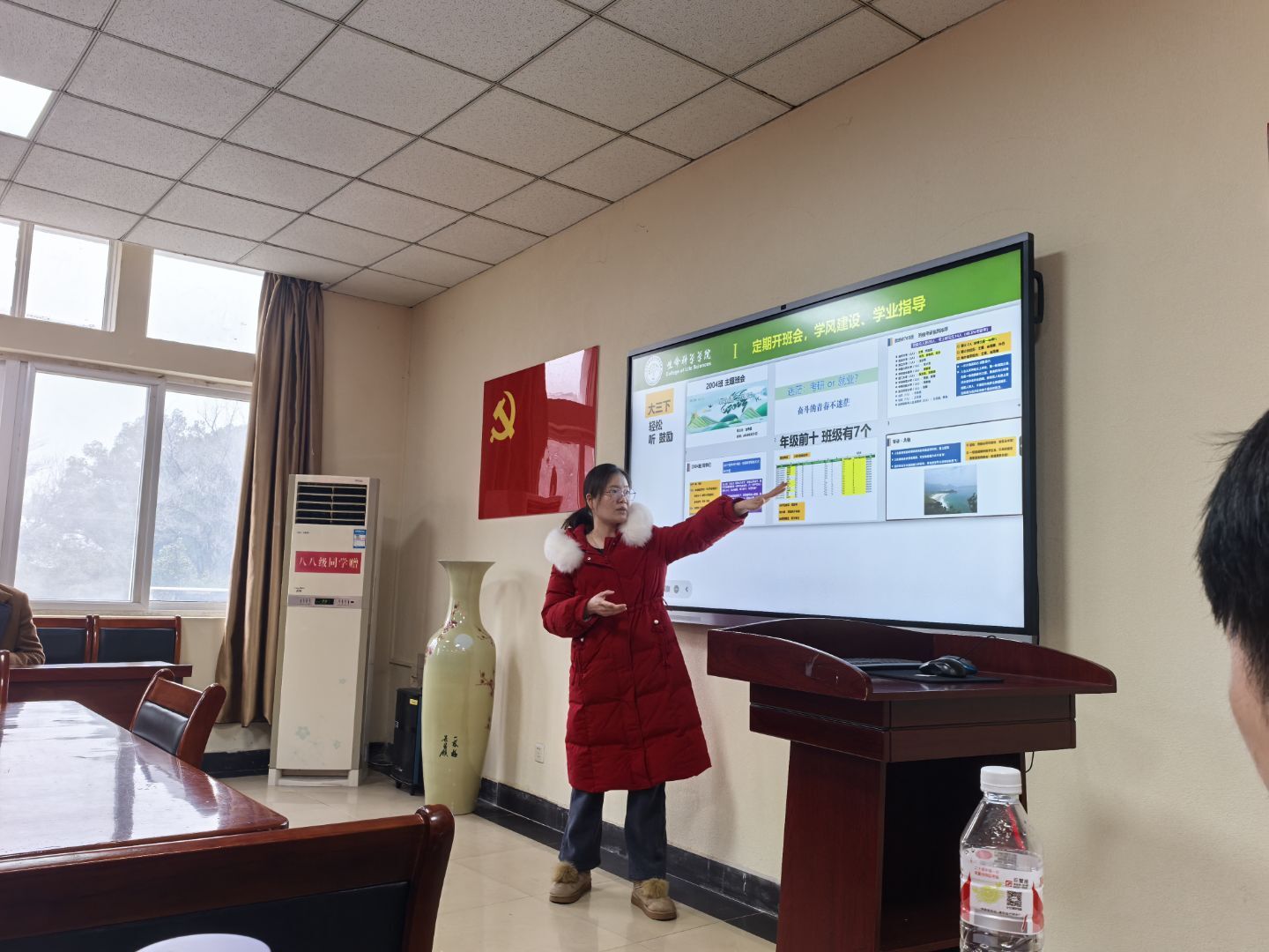 继而,各辅导员依据分工模块,依次强调班主任年度重点工作,涵盖危机事件应对策略、学风建设强化、心理健康教育推进以及资助业务精熟掌握等方面。