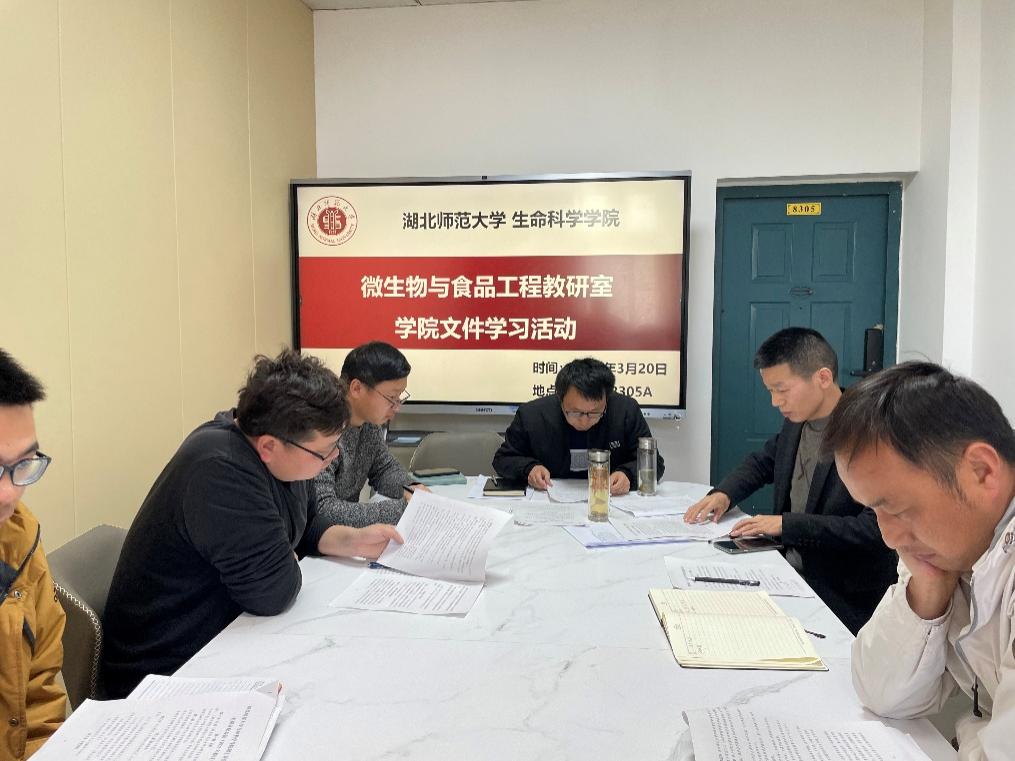 本网讯(通讯员 刘军)为深入贯彻学院关于加强理论制度学习、提升教师队伍责任意识与履职能力的部署要求,yl23455永利官网微生物与食品工程教研室于周四下午组织全体教师开展集体学习活动。学院领导带头领学,围绕研究生招生培养、教师考核制度等核心文件展开研讨,着力推动教研室教育教学工作高质量发展。