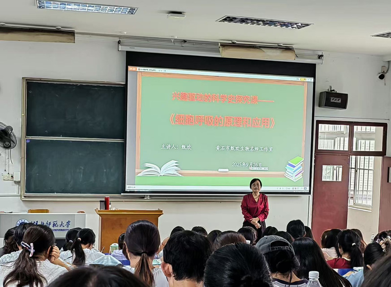 (通讯员 席德强)2025年9月26日,黄石六中甄欢老师带领甄欢名师工作室成员一行6人,为湖北师范大学生命科学院2023级师范生开展了《细胞呼吸的原理和应用》的研讨课。本次活动旨在推动在职教师和师范生在共研共讨中提升生物探究教学设计水平。