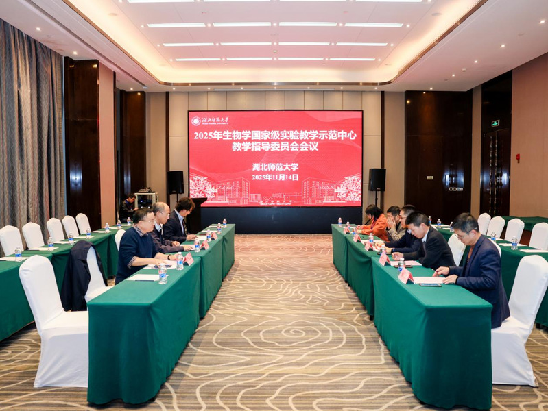 本网讯(通讯员 邵海晨)2025年11月14日晚,生物学国家级实验教学示范中心(湖北师范大学)(以下简称“示范中心”)教学指导委员会会议在黄顺利召开。会议采用线上线下相结合的方式,示范中心教学指导委员会委员王建波教授、高坚教授、何玉池教授、邱保胜教授、侯建军教授及学校教务处处长刘美风教授、yl23455永利官网院长胡远亮教授、副院长陈亮教授参加会议。