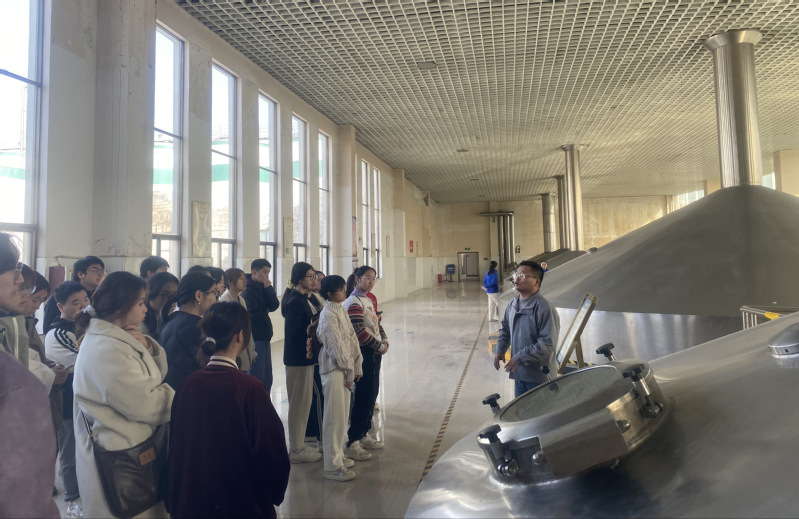 在企业负责人的带领下,同学们先后参观了原料预处理车间、发酵罐区、包装生产线及智能化控制中心。丁经理向同学们详细介绍了公司在生产智能化升级、质量管控体系建设等方面的成果,重点讲解了啤酒酿造过程中的原料筛选、发酵工艺控制等核心专业知识,并现场解答了大家关于产品质量检测标准、环保节能技术应用等问题。同学们还与企业技术骨干近距离交流,了解企业人才培养模式与职业发展路径。