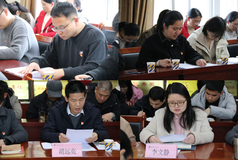 在党的创新理论学习环节,市科技局机关党支部郭鸿锐同志领学了党的二十届四中全会、省委十二届十一次全会及市委十四届九次全会暨经济工作会议精神;市高新中心党支部郭琼娣同志领学了国家主席习近平发表的二〇二六年新年贺词及中央八项规定精神;yl23455永利官网院长胡远亮同志领学了习近平总书记关于学习贯彻党的二十届四中全会精神的重要要求;学院党委副书记李文静同志领学了省、市纪委监委关于违反中央八项规定精神及党员干部醉驾问题的反面典型案例通报。通过学习,全体党员进一步统一了思想,明确了方向,增强了纪律意识和规矩意识。